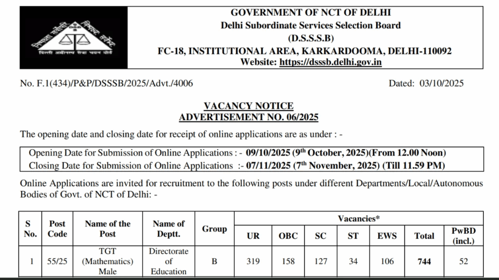 For full details, including the complete scheme, examination schedule, general instructions, fee concession rules, and the syllabus for the Delhi Government Job Vacancy Recruitment by DSSSB for the year 2025, please visit the DSSSB Website at https://dsssb.delhi.gov.in/dsssb-vacancies.