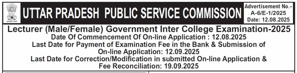 The Public Service Commission, Uttar Pradesh (UPPSC), based in Prayagraj, has officially announced the commencement of the Lecturer (Male/Female) Government Inter College Recruitment Examination-2025. This significant recruitment drive, detailed under Advertisement No. A-6/E-1/2025, is designed to identify and appoint qualified candidates for Group-C employee category, Non-Gazetted Lecturer positions across various government educational institutions within the state of Uttar Pradesh. The preliminary examination will serve as the initial step in the selection process, which will be held at various test centers across the state.
